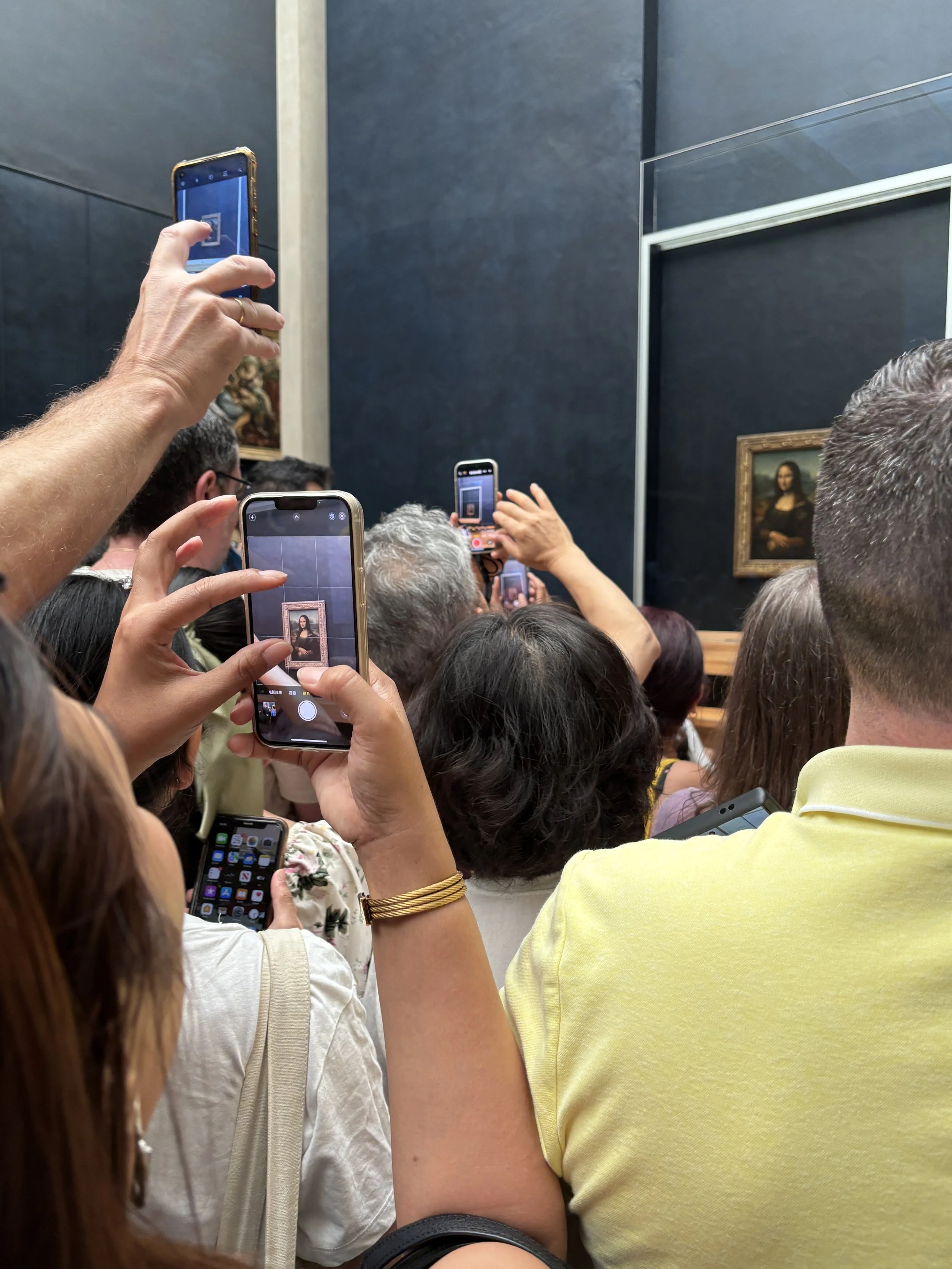 On our recent trip to Paris, we visited the Louvre and joined the circus of people cramming to see the Mona Lisa. I say 'see' because virtually no-one was looking with their eyes. They were looking with their phones. The rest of the room - which is incidentally crammed with other incredible artworks - was forgotten as everyone barged in to try to take a snap of the picture, take a selfie, and generally prove to the world they were there. They observed the Mona Lisa but they didn't see her.